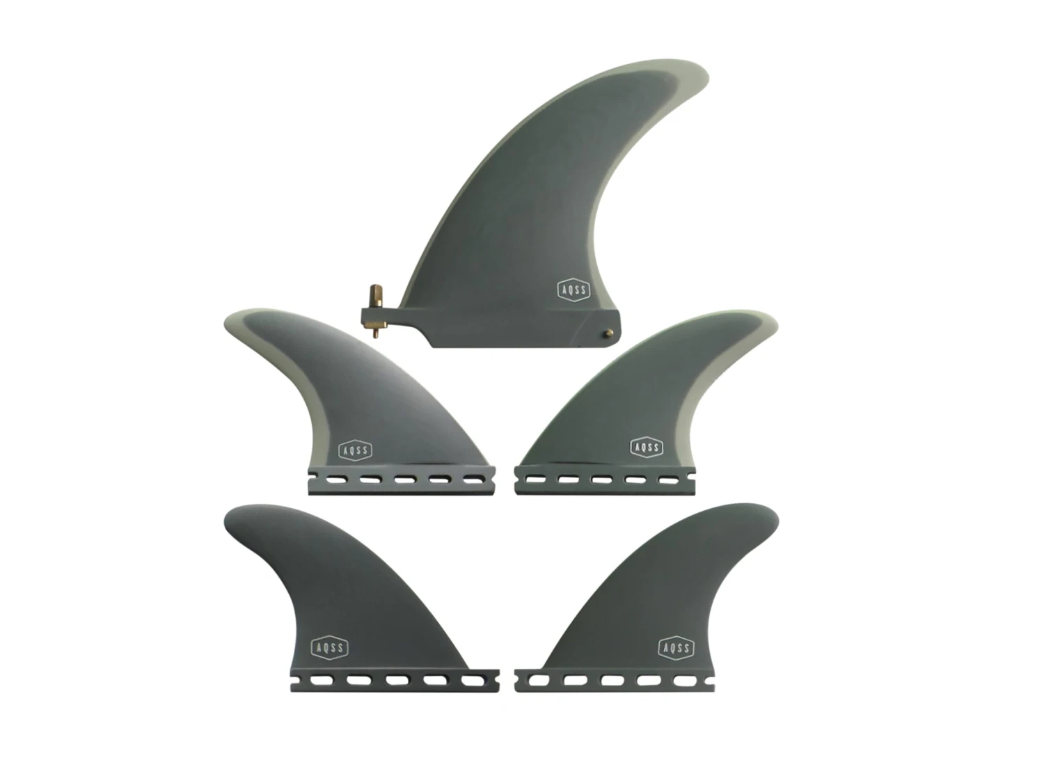 The AQSS Dawn 4+1 fin setup offers versatility for all wave conditions and riding styles. Ride your board as a 2+1 setup for down the line point break waves or a quad setup for more manoeuvrability and pivot. With greater stiffness, these fins are more forgiving and offer greater stability.