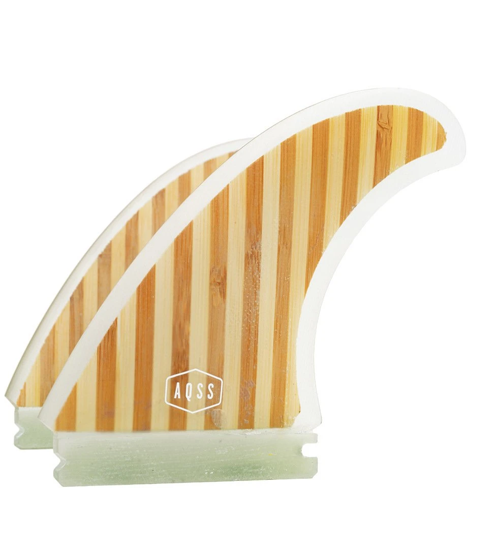 The AQSS Bamboo Twin Fin 5 ½” twin tone bamboo twin fins are designed with stylish, performance surfing in mind. These fins will bring a vintage feel to modern boards by allowing progressive surfing while maintaining flow and encouraging high line surfing.
