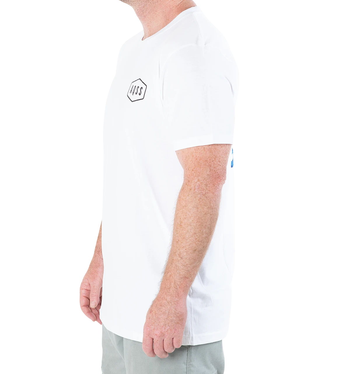 Available in white, this tee is a great addition to the wardrobe this summer. The fit type is regular & is soft-to-touch. The model wears a large. Share your stoke in your AQSS Tee!