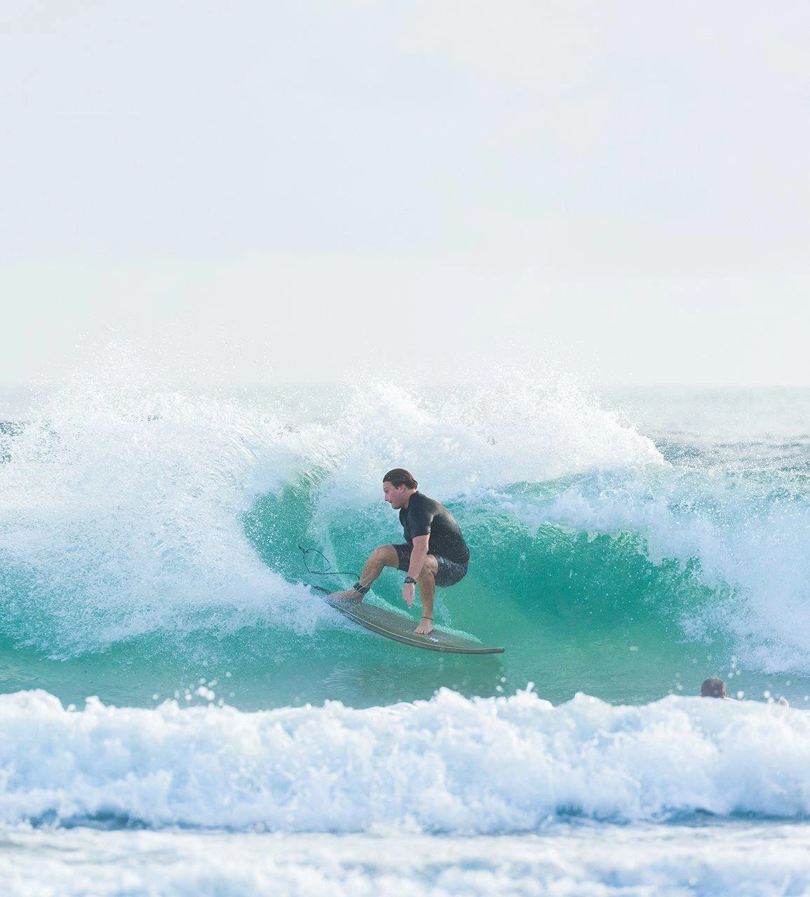 The construction of this board features a triple wrap rail for increased ding protection and customisation of the shape. Please note this requires a seam near the tail that can be more pronounced on some boards.