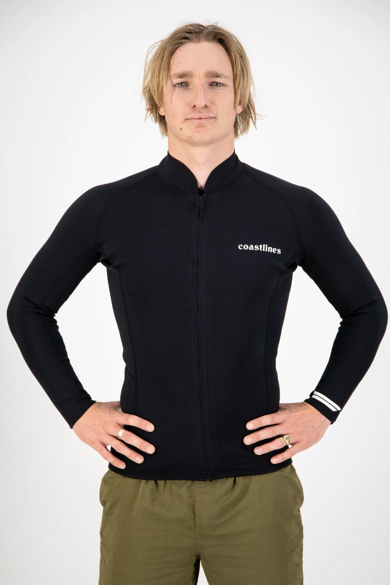 The Coastlines 2mm Classic Long Sleeve Front Zip Jacket represents a very ‘on trend’ summer suit for days when the wind chill factor is high, and those early and late sessions when you need a little extra warmth. The Front Zip Jacket also prevents chafing and adds a cushioned layer to your chest and stomach when you want to wear boardies (Trunks). This suit can be easily unzipped out in the water for those wanting to rep the retro vibes.