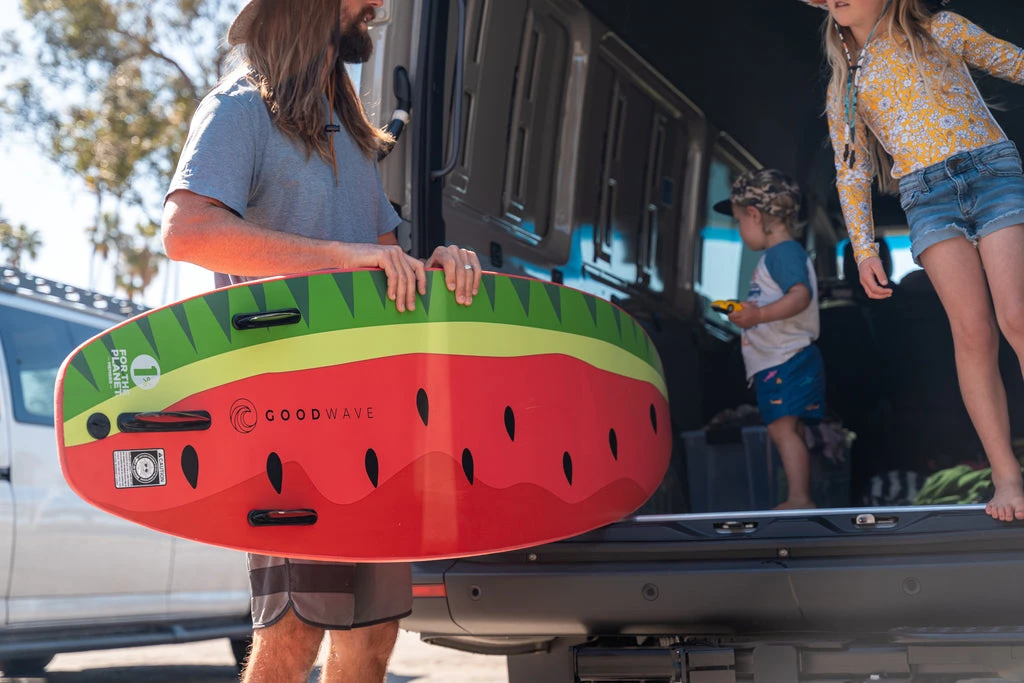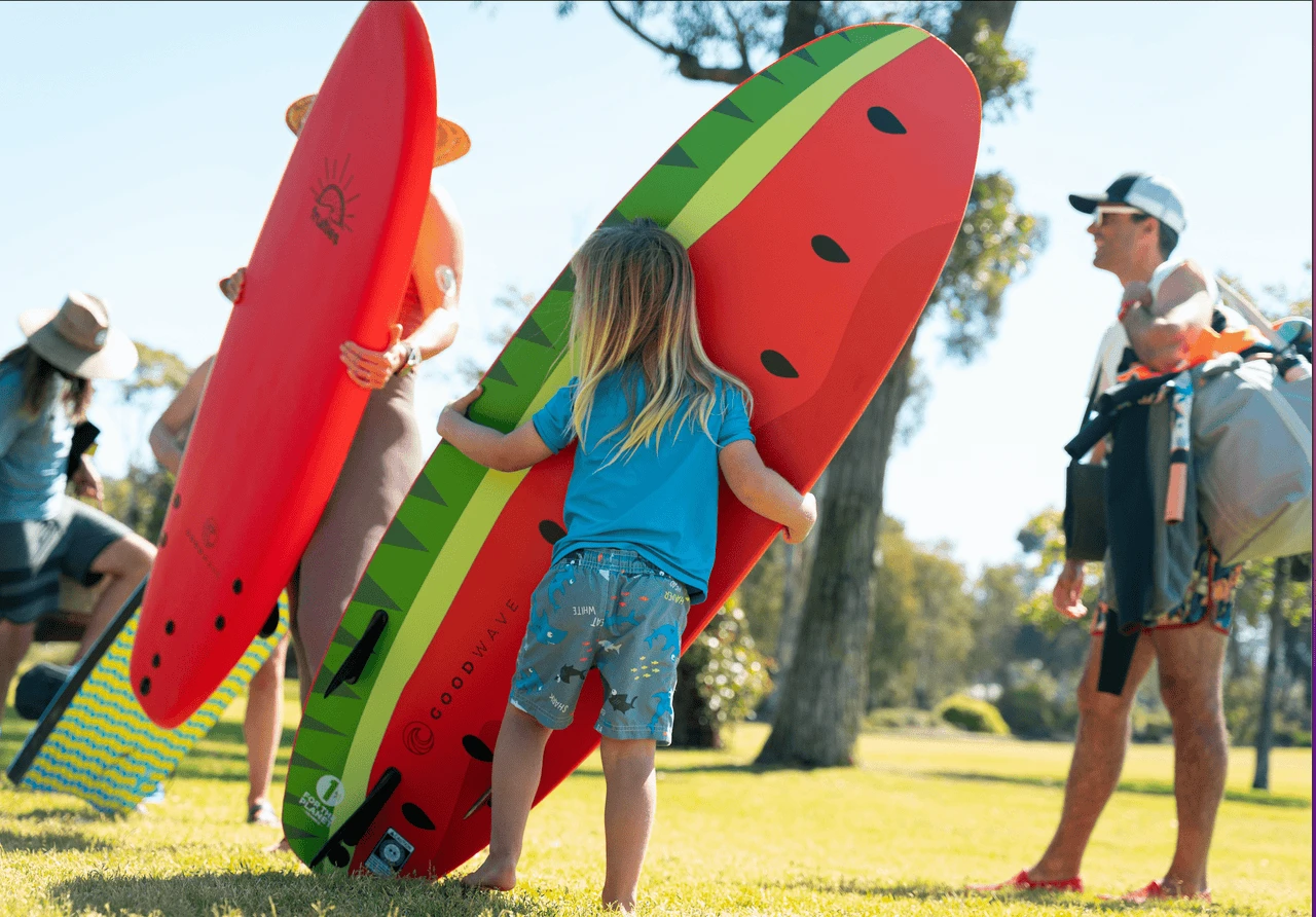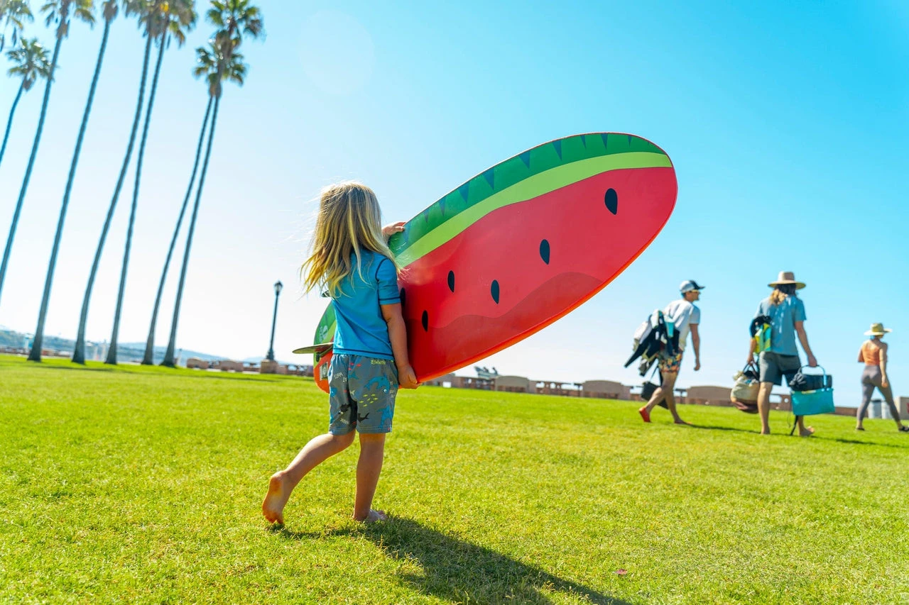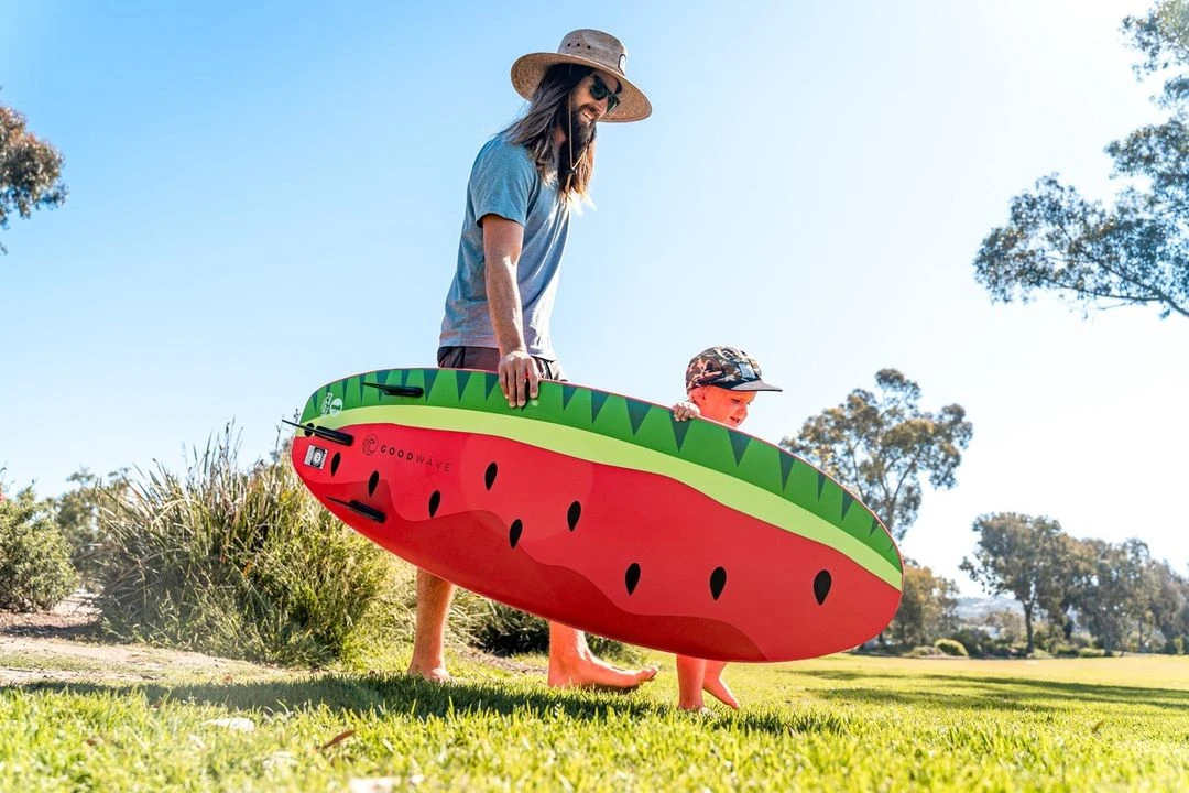 The Fruities foam surfboard by Good Wave, adorned with a vibrant watermelon graphic, is the perfect choice for outdoor-oriented families looking to enjoy a day out on the waves. Weighing in at just under 3kg, this board has been designed with portability in mind – it’s light enough for kids to carry their own board! Made using high-grade waterproof foam and epoxy resin, this durable and buoyant board offers stability and performance on the waves. Enjoy a day of fun with family and friends, with a board that stands up to the elements.