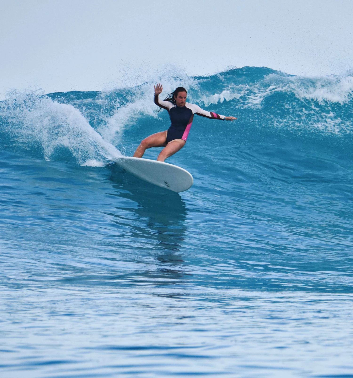 The rounded square tail and forgiving rail shape greatly improve manoeuvrability regardless of the surfers skill level. This board is extremely versatile in a variety of wave conditions with a conventional thruster single tab fin setup with reinforced plug placement.
