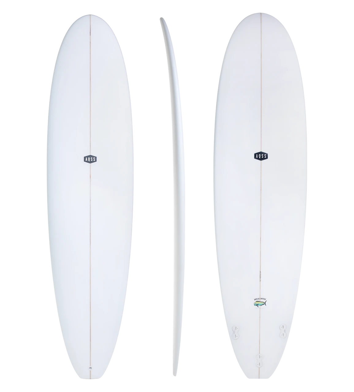 The Mahi Mahi is constructed with two solid layers of glass and a modern visually appealing traditional clear resin finish. The bottom contours feature a single concave into a double creating liveliness when ridden from the tail and the ability to nose ride as the surfer progresses their skill level.