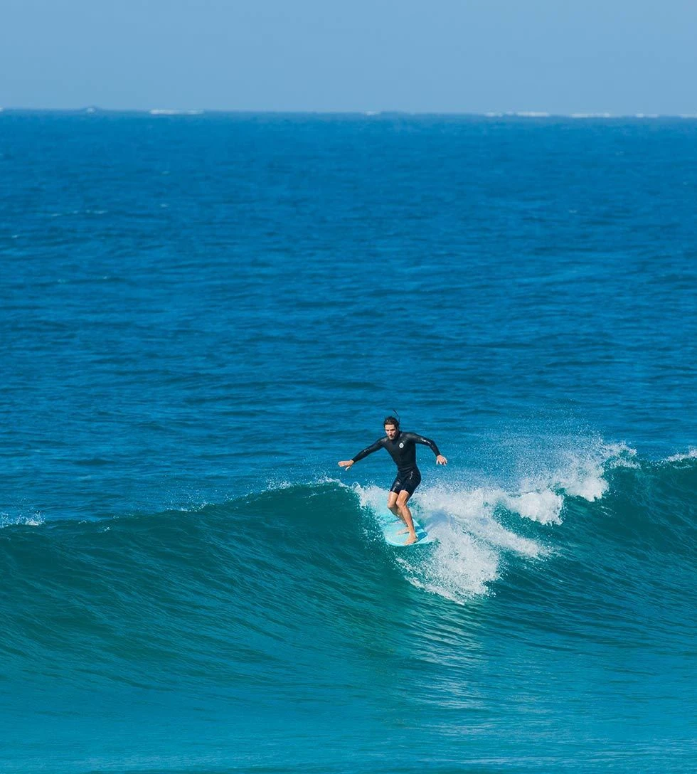 This Soulstice features a single concave running from the nose through to the midpoint creating lift and stability while nose riding. A drawn-out accentuated double concave through to the tail assists with speed and flow through your turns.