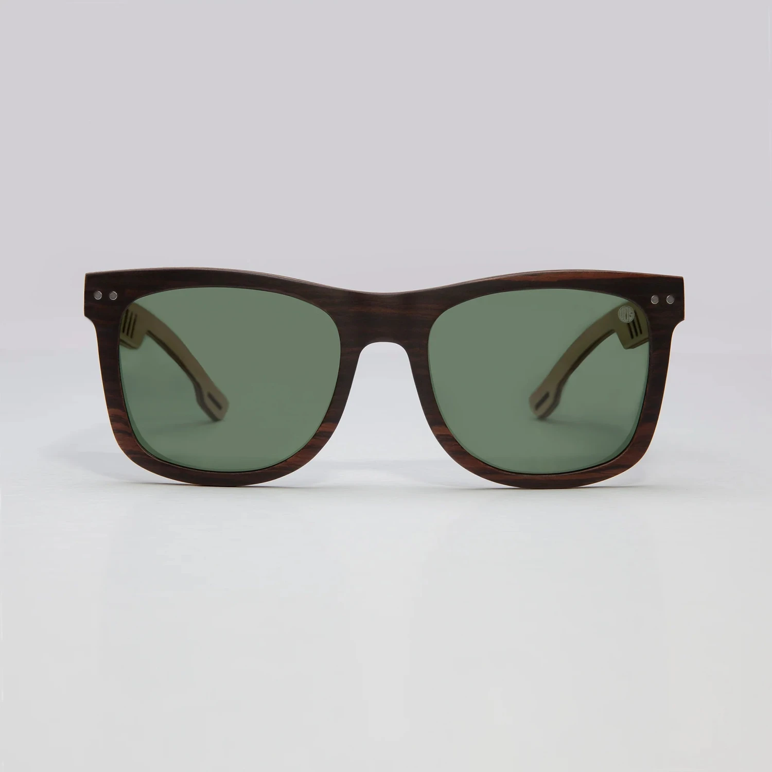 Pit Dogs feature a classic design, re-engineered in wood with an Ebony veneer.  Featuring a soft green polarised lens that sharpens colour and reduces glare, allowing your eyes to be at their most relaxed. The Pit Dog strong design ooze a relaxed cool vibe. Perfect eye shade for post surf chillin’.